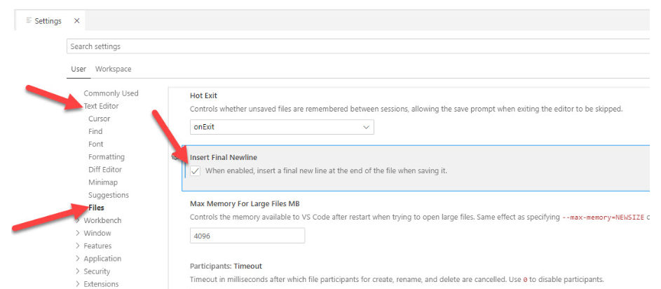 2. Bật xóa ký tự thừa cuối dòng khi lưu như ảnh
