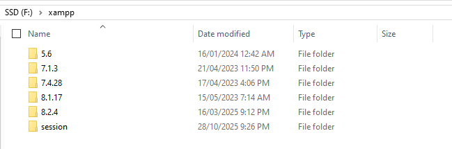 Hiện tại như máy tính của tôi đang cài 5 bản xampp